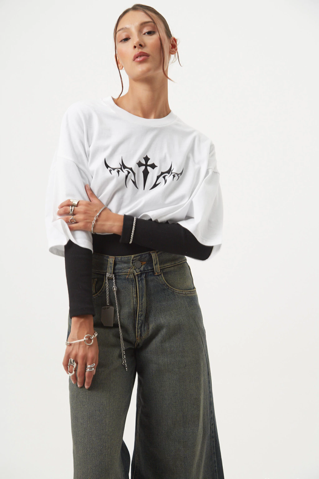 REMERA OVERSIZE CON CORTE CORTO TIPO CROPPED, DISEÑADA PARA UN ESTILO JUVENIL Y MODERNO. CONFECCIONADA EN ALGODÓN SUAVE Y LIVIANO, ESTA PRENDA OFRECE UNA SILUETA HOLGADA QUE BRINDA COMODIDAD SIN PERDER EL TOQUE TRENDY.